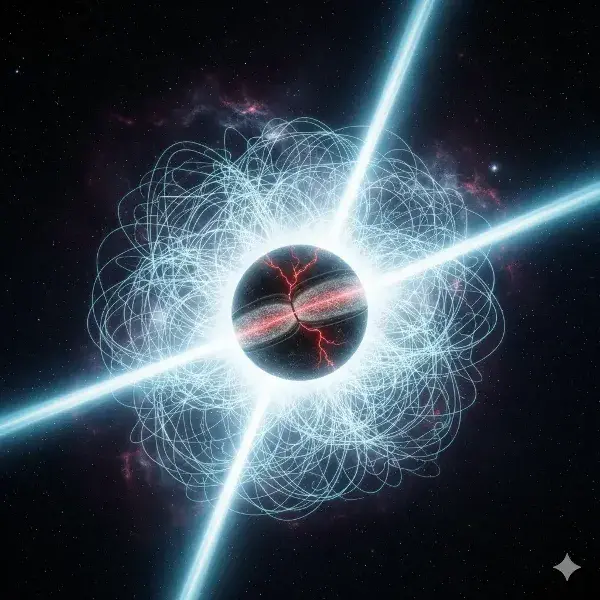 Магнетар — это редкий и экстремальный тип нейтронной звезды, главной отличительной чертой которого является мощнейшее магнитное поле во Вселенной, достигающее значений в 10¹¹ Тесла. Для сравнения, это в триллионы раз сильнее магнитного поля Земли. Теоретическая модель этих объектов была предложена в 1992 году, а первое прямое подтверждение их существования было получено в 1998 году.